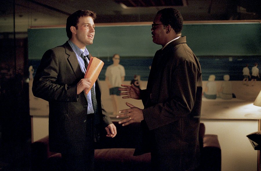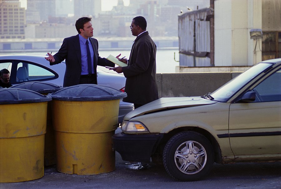 Кадры из фильма "В чужом ряду". В ролях: Бен Аффлек, Самуэль Л. Джексон. Режиссер: Роджер Майкл.